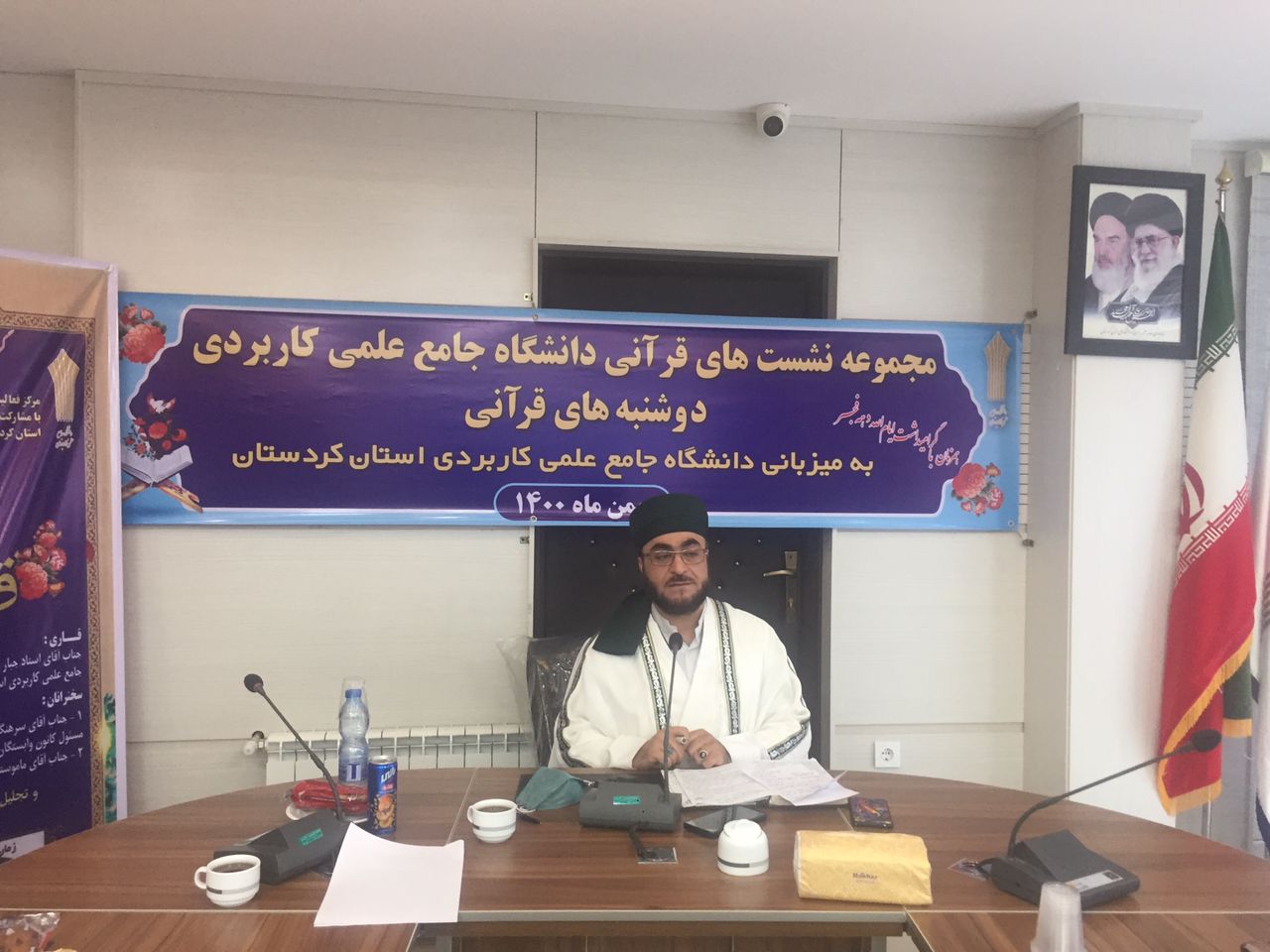 سپس ماموستا سید عارف عنایتی از اساتید حوزه و دانشگاه با گرامیداشت پیروزی انقلاب اسلامی و یاد و خاطره شهدا تاکید کرد: موضوع جهاد تبیین که از سوی مقام معظم رهبری عنوان شده است وظیفه 2 قشر مهم جامعه یعنی علمای دینی و دانشگاهیان است و باید مورد توجه و سرلوحه امور باشد.
