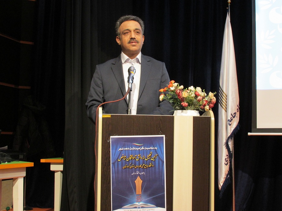 به گزارش روابط عمومی دانشگاه جامع علمی کاربردی استان کردستان، آیین تجلیل از دانش آموختگان شاخص دانشگاه در استان با حضور دکتر محسن فتحی نماینده مردم سنندج در مجلس شورای اسلامی ، رمضانی معاون سیاسی امنیتی استاندار، پیشکاری مدیرکل کار، تعاون و رفاه اجتماعی ، دکتر شاهین فکور سرپرست واحد استان کردستان ، حجت الاسلام و المسلمین جواد حیدری رابط نهاد نمایندگی مقام معظم رهبری در واحد استانی و جمعی از مسئولین استانی، در سنندج برگزار شد.